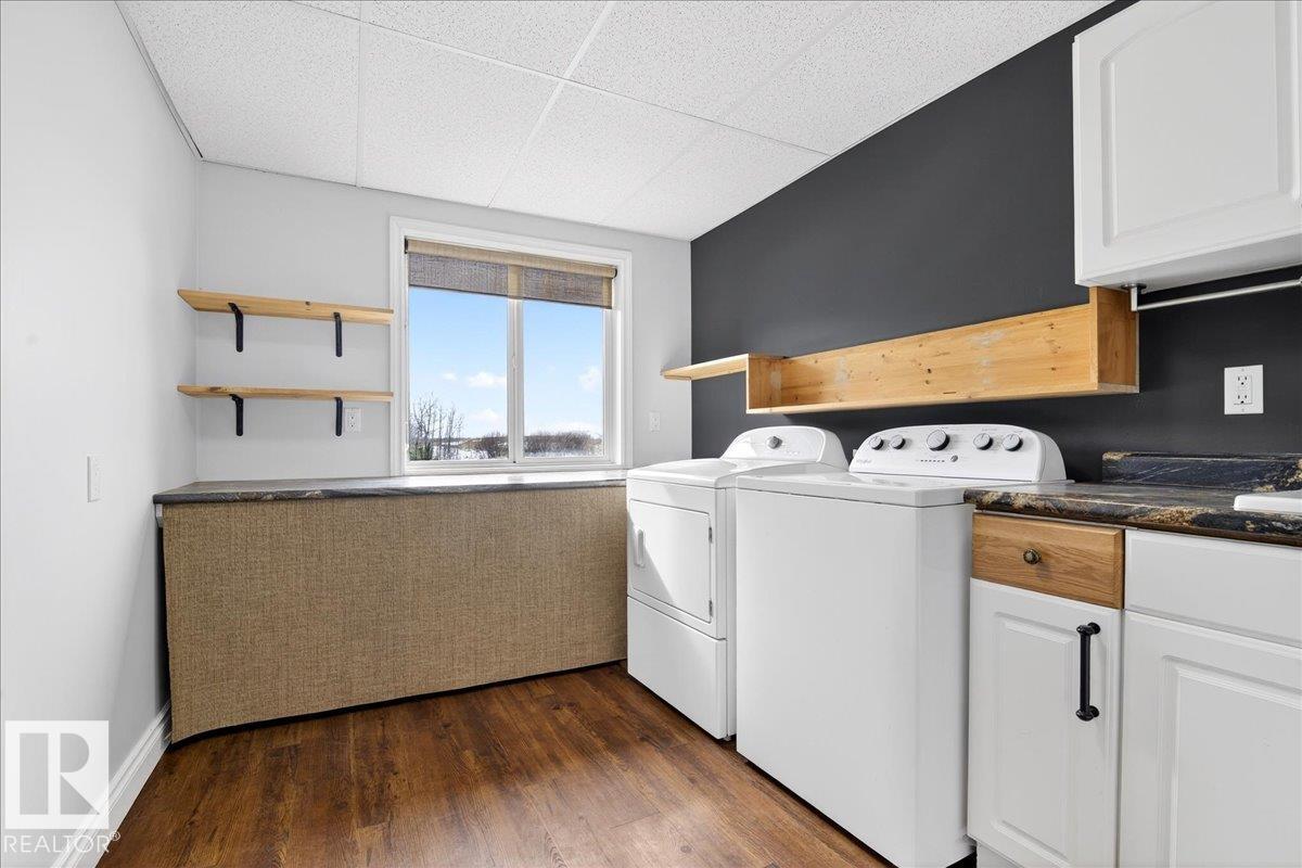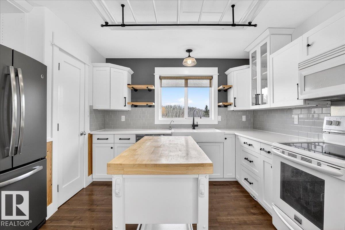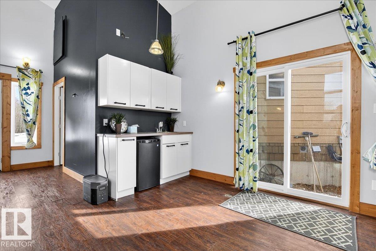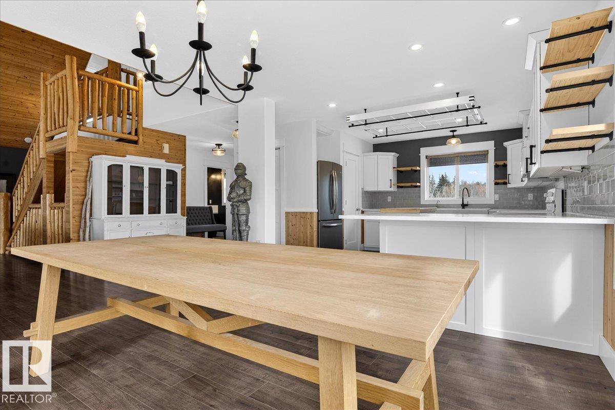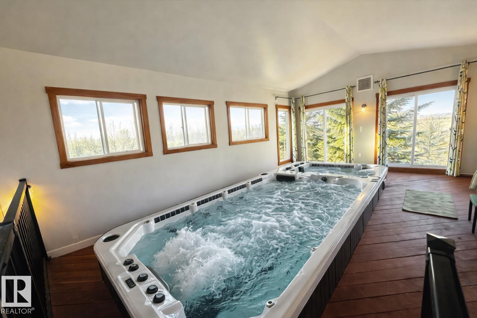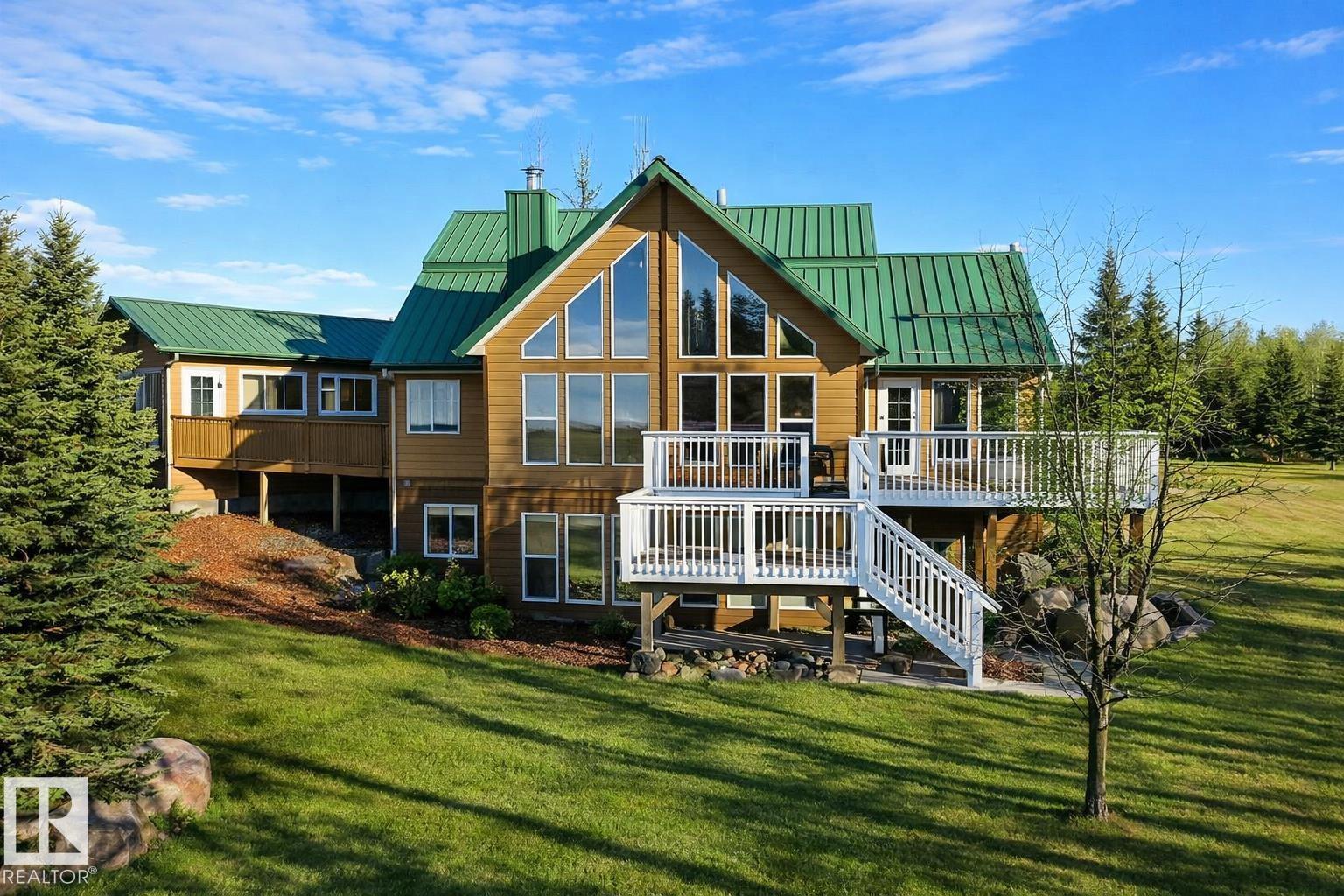 Rare INVESTMENT opportunity 5.9 acres of rolling, private land complete with a tree-lined driveway and a secondary suite! This versatile acreage boasts: 1,805 sq ft home, 864 sq ft fully finished 220V metal-clad shop, and a 650 sq ft auxiliary building with swim-spa, 3 pc bathroom and in floor heating! The home offers vaulted ceiling with expansive windows, tongue-and-groove pine ceilings, log railings and quartz countertops, large pantry, kitchen island, under-cabinet lighting, gas/electric stove options, ...