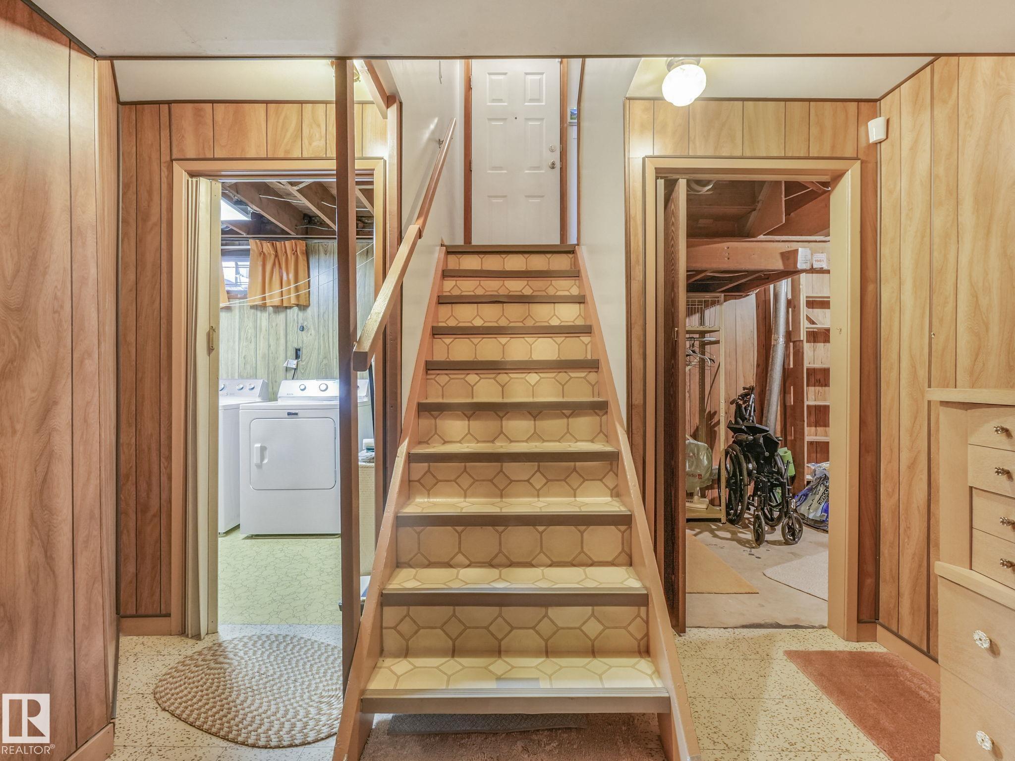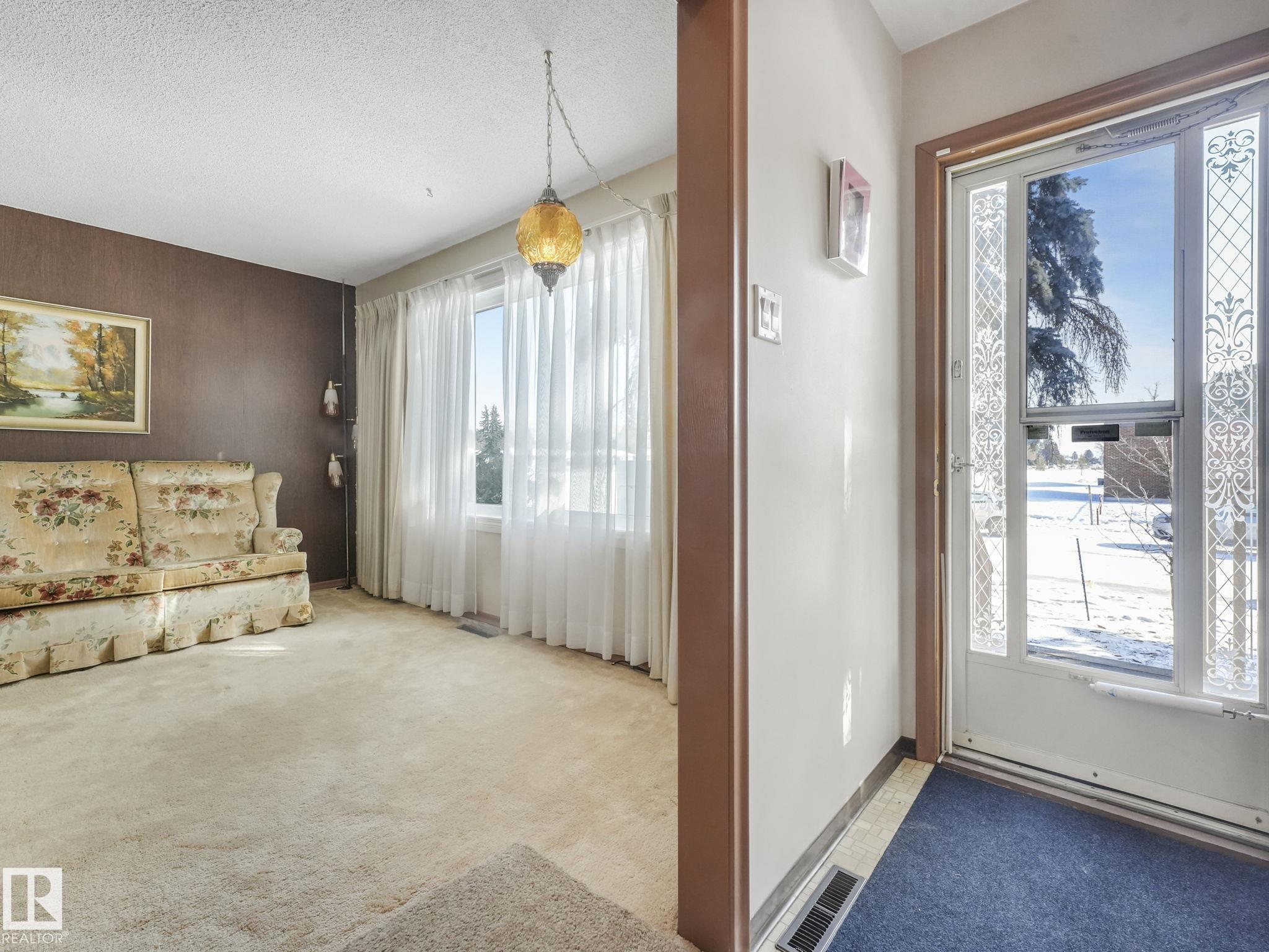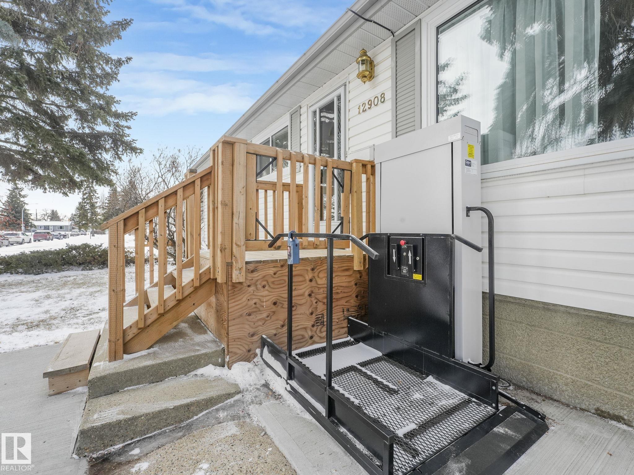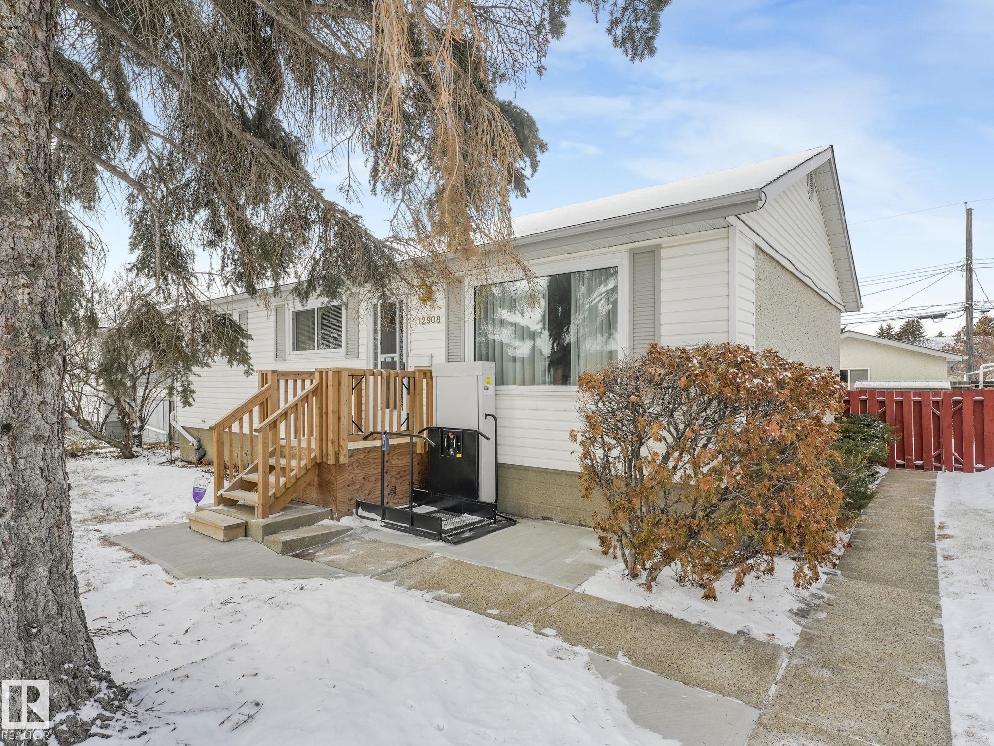 GREAT STARTER HOME 3 BEDROOMS ON MAIN FLOOR BASEMENT DEVELOPMENT HAS BEDROOM NO CLOSET WITH 3 PIECE BATH ATTACHED,VERY LARGE RUMPUS ROOM WITH A BAR,LAUNDRY AREA ,WORKSHOP AREA & STORAGE.GOOD SIZE LOT WITH GARAGE CURRENTLY HAS A WHEELCHAIR LIFT WITH HANDICAP PARKING FRONT OF HOME.SCHOOL ACROSS THE STREET AND CLOSE TO BUS STOP.HUGE ATTACHED SUNROOM TO ENJOY.NOT FAR FROM ALL YOUR SHOPPING NEEDS.ALSO FURNACE & HWT ARE NEWER .PLUS A WATER SOFTNER INCLUDED