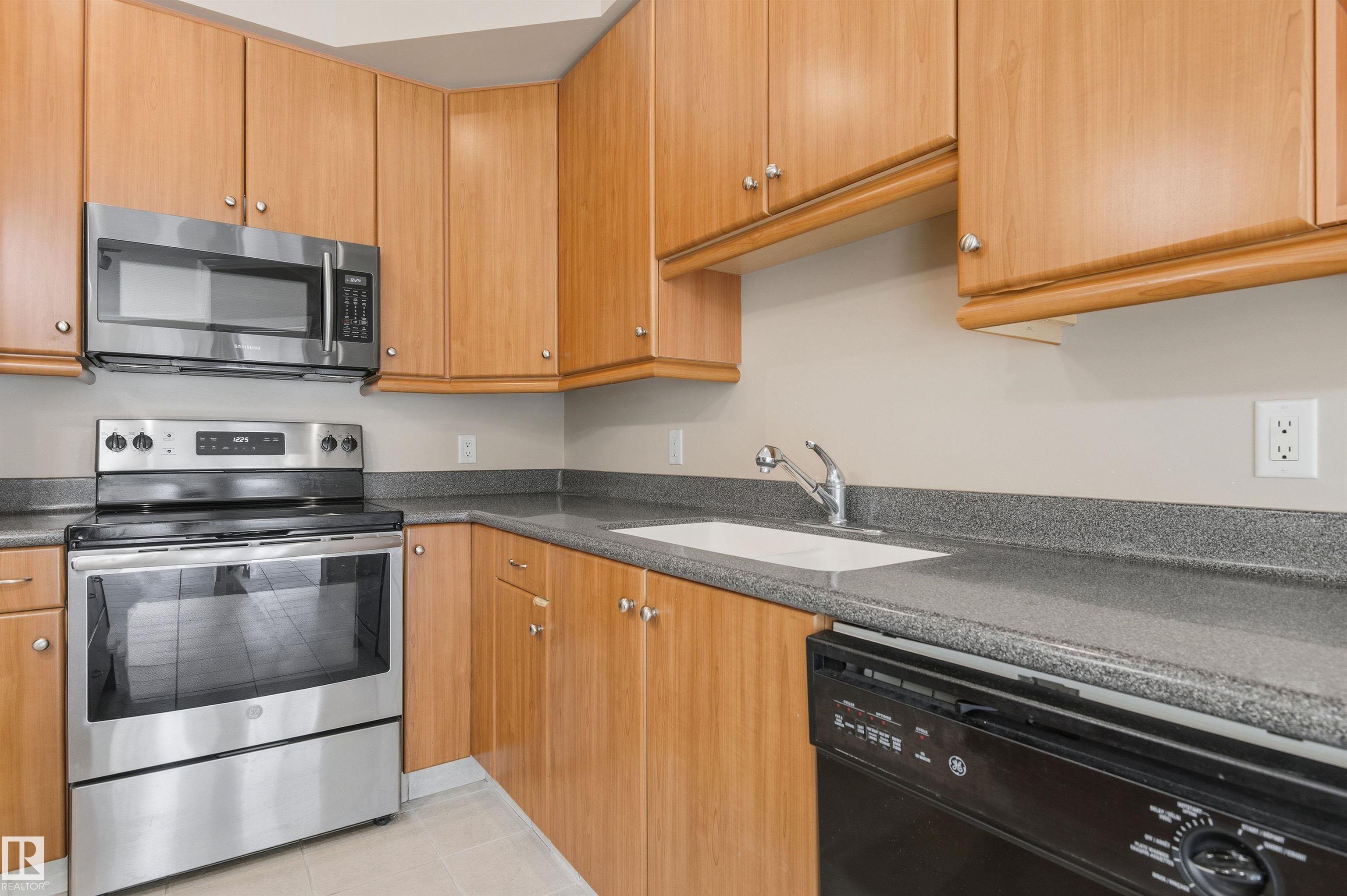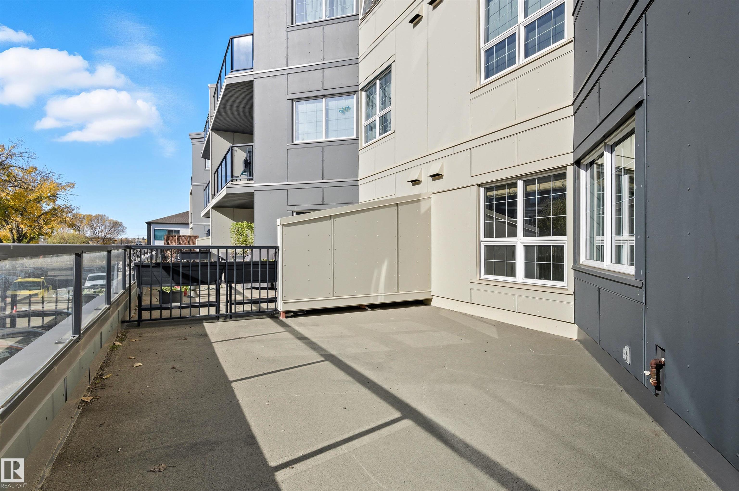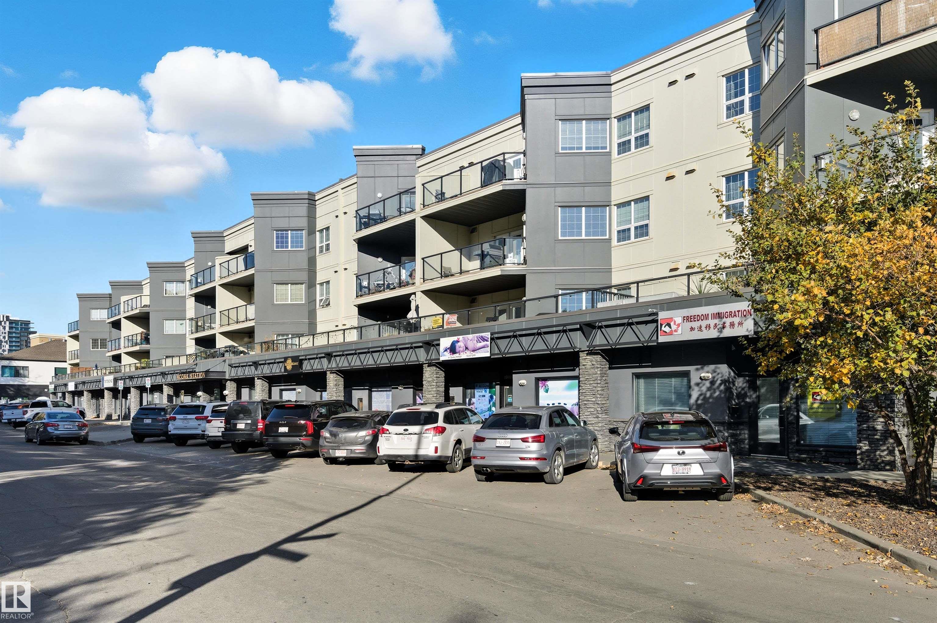 Welcome to Scona Station in Ritchie! This original owner, never rented, 1035 sqft 2 bed+2 bath condo offers an unbeatable location just minutes to the UofA and steps from Whyte Avenue. Perfect for students, professionals or investors, this south-facing home is all tile (so clean) and features high 9’ ceilings, in-floor heating, and an open layout filled with natural light. New stove, fridge & washing machine, granite counters & a spacious living area that flows out to your MASSIVE 500+ sqft patio - like you...