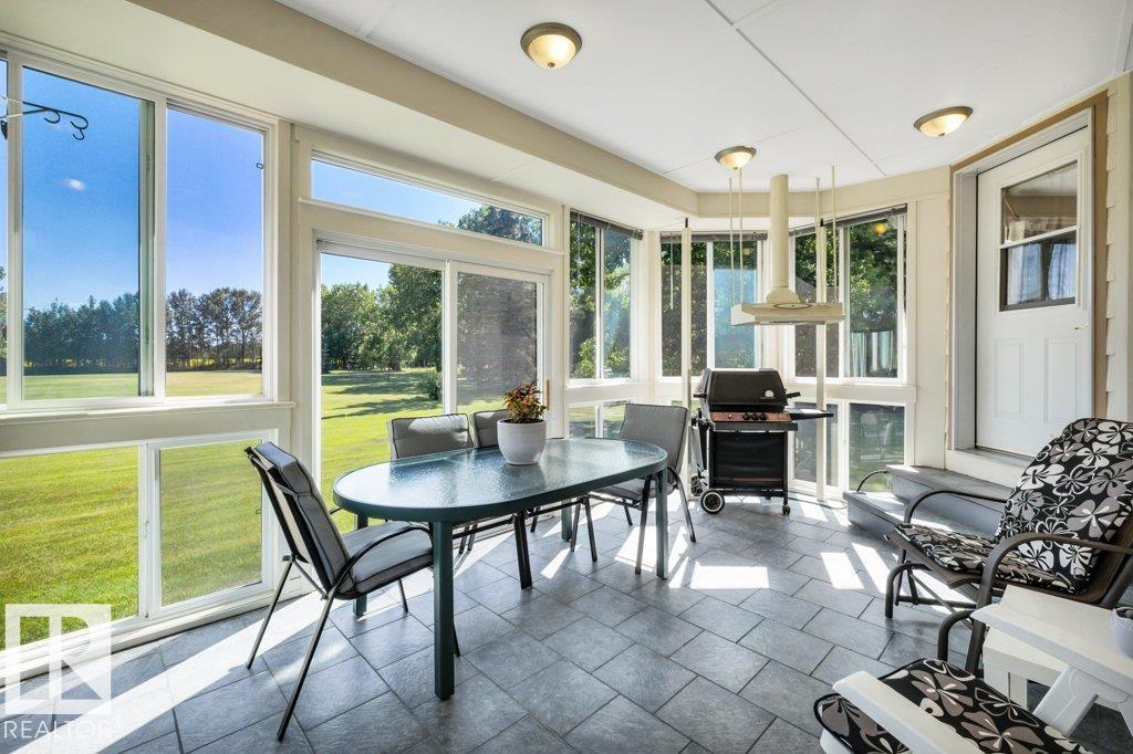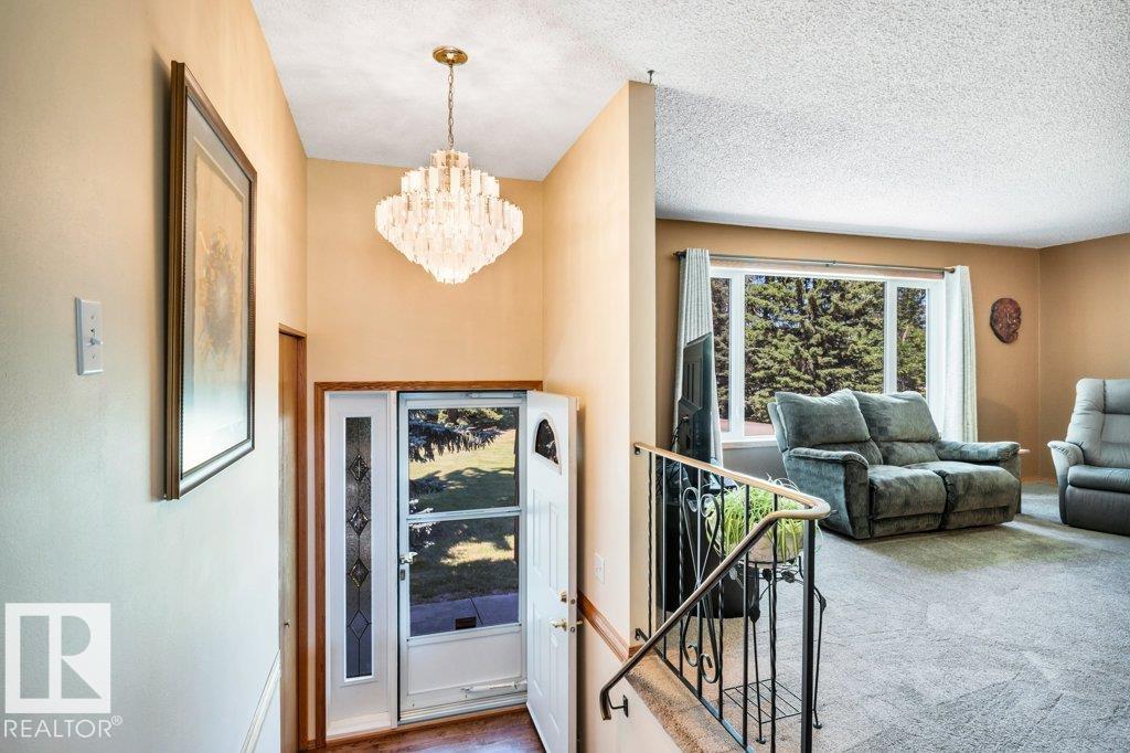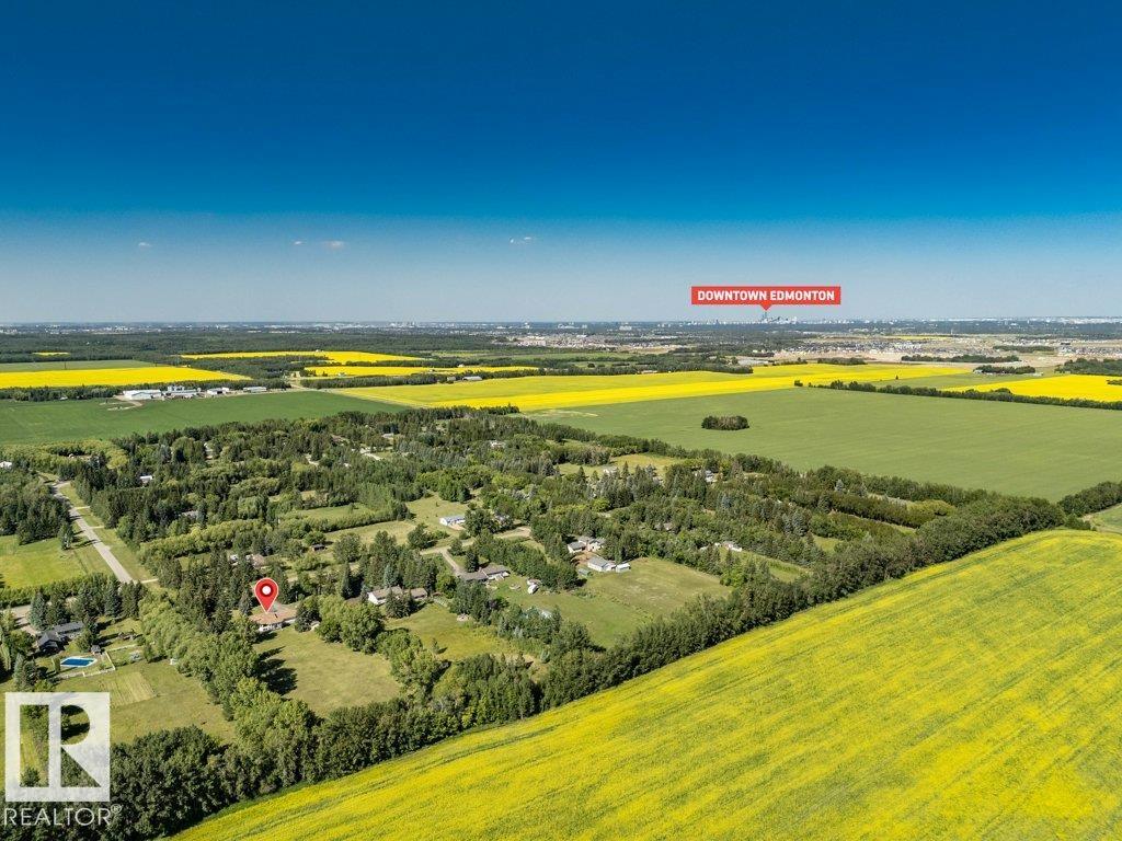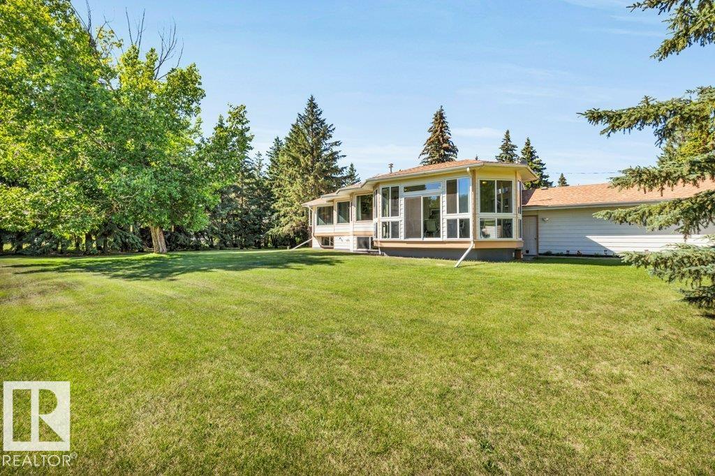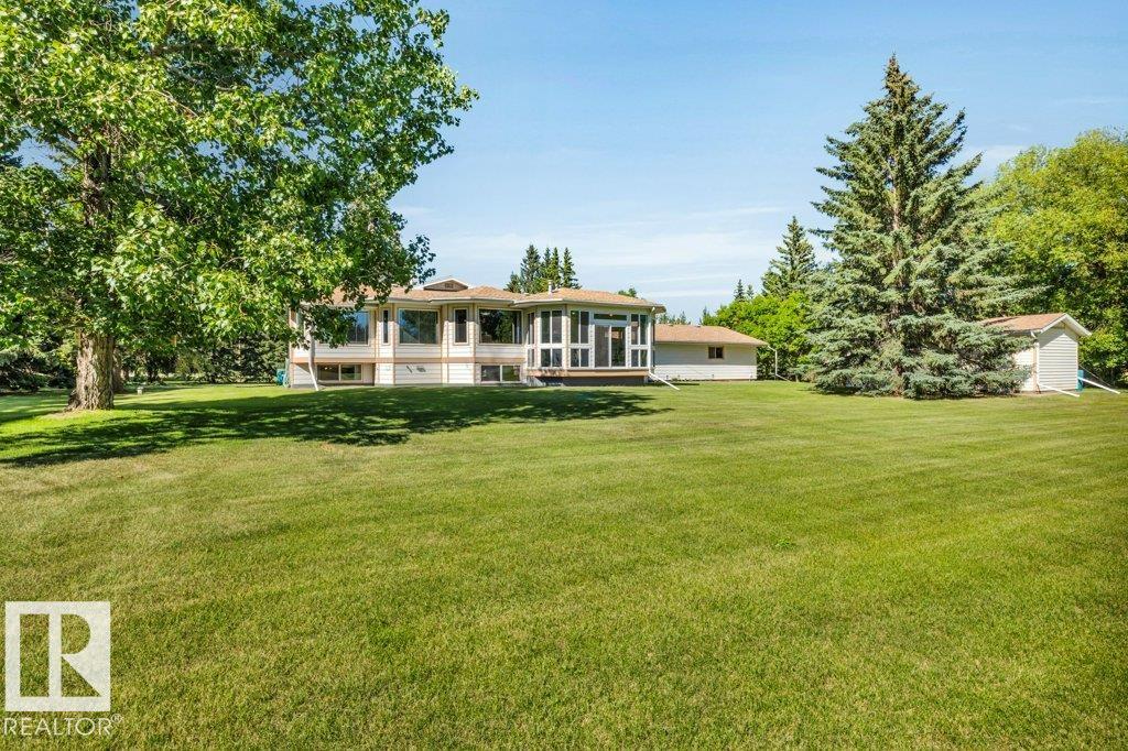 Just minutes from Edmonton, this beautifully kept Bi-level sits on 2.99 acres with paved access right to the door. The 1,683 sq ft main floor features a spacious living/dining area. A bright & spacious kitchen has island w/ hidden compartment & full stand-up fridge and freezer. In addition, the sunny eating area has access to the multi-use sunroom. Along with the 4-pc main bath, there are two bedrooms up, including a primary with 4-pc ensuite and large walk-in closet w/ dresser. The fully finished basement ...