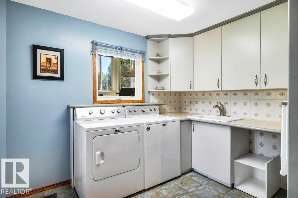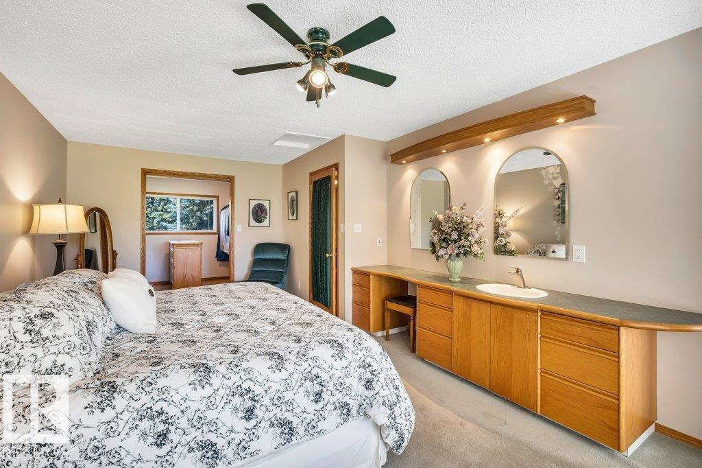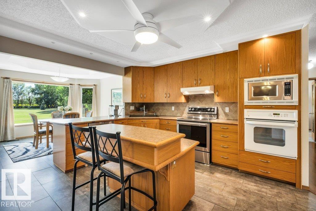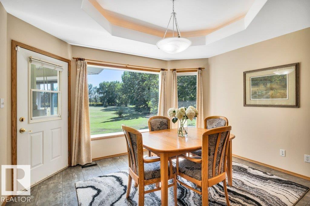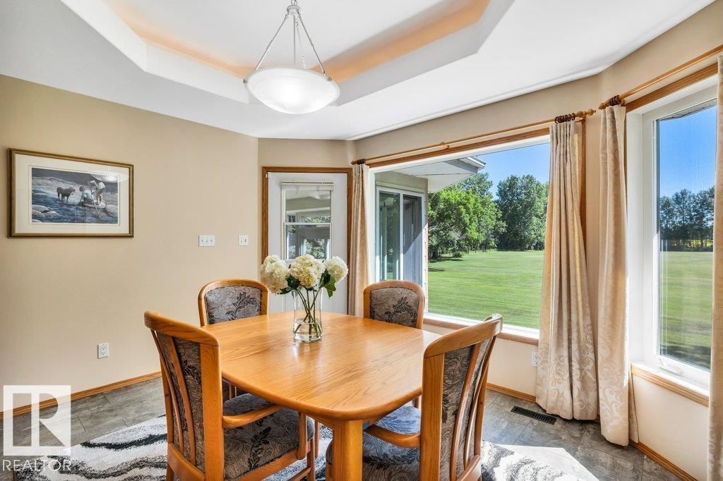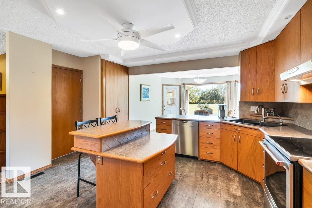 Just minutes from Edmonton, this beautifully kept Bi-level sits on 2.99 acres with paved access right to the door. The 1,683 sq ft main floor features a spacious living/dining area. A bright & spacious kitchen has island w/ hidden compartment & full stand-up fridge and freezer. In addition, the sunny eating area has access to the multi-use sunroom. Along with the 4-pc main bath, there are two bedrooms up, including a primary with 4-pc ensuite and large walk-in closet w/ dresser. The fully finished basement ...