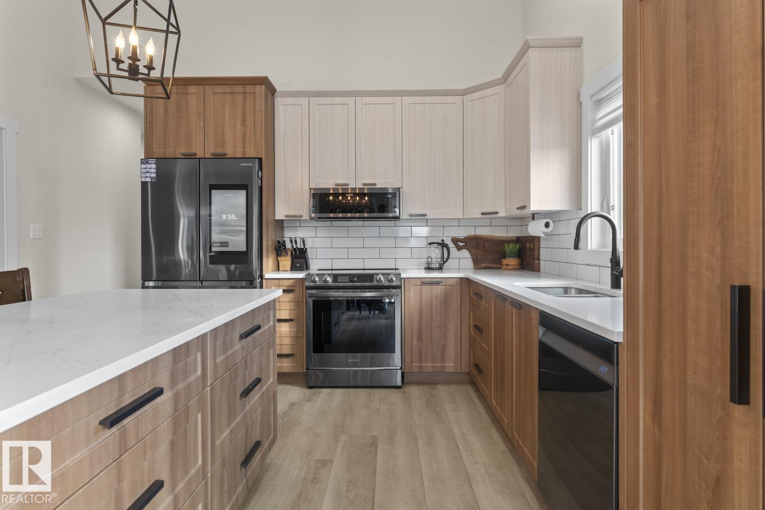 Modern design, elevated upgrades, and the comfort of everything already complete. This 2023 bi-level in Parkview Estates, Cold Lake North offers over 1,600 sqft of finished space with central air, vaulted ceilings, large windows, and an electric fireplace with custom mantel. The upgraded dual-tone kitchen features extended cabinetry, modern stone countertops, an eat-at island, Samsung black stainless steel appliances including an induction range, smart fridge, and low-profile microwave hood fan, plus a but...