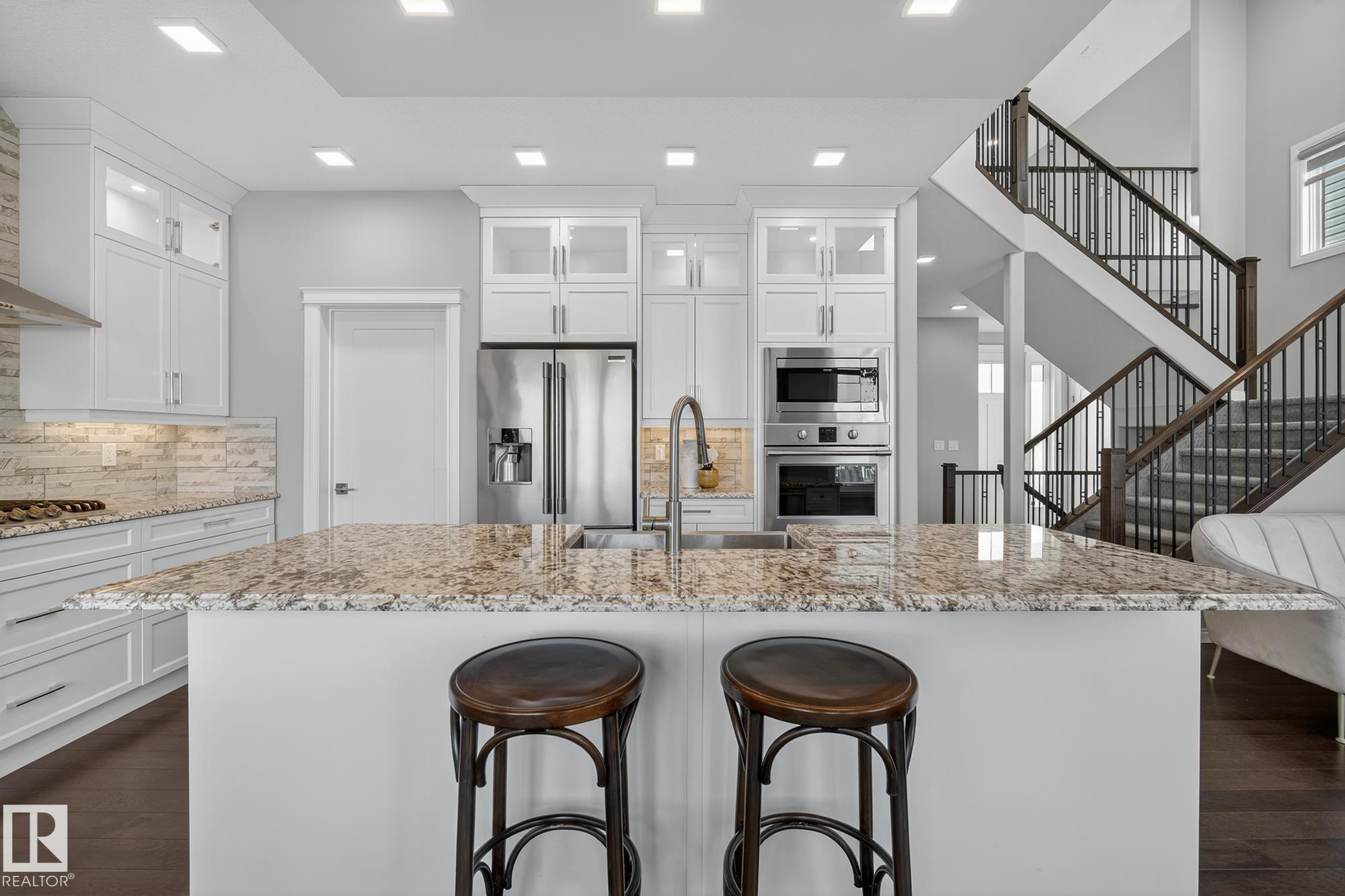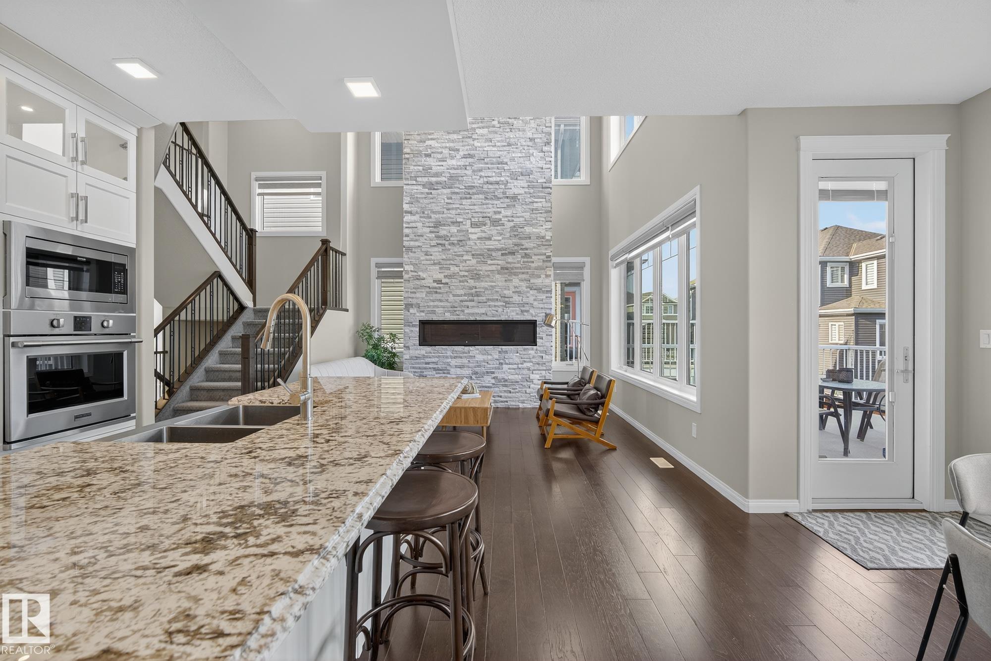 Turnkey and impeccably maintained, this custom-built walkout two-storey offers refined living BACKING DIRECTLY ONTO THE POND in the heart of Starling. Soaring 18-ft ceilings and a dramatic open-to-above great room are framed by a 4-panel window wall, flooding the home with natural light and capturing uninterrupted water views. The kitchen is elegantly appointed with European-style cabinetry, Frigidaire Professional appliances, gas range, and beveled granite countertops. Upstairs features a spacious bonus ro...