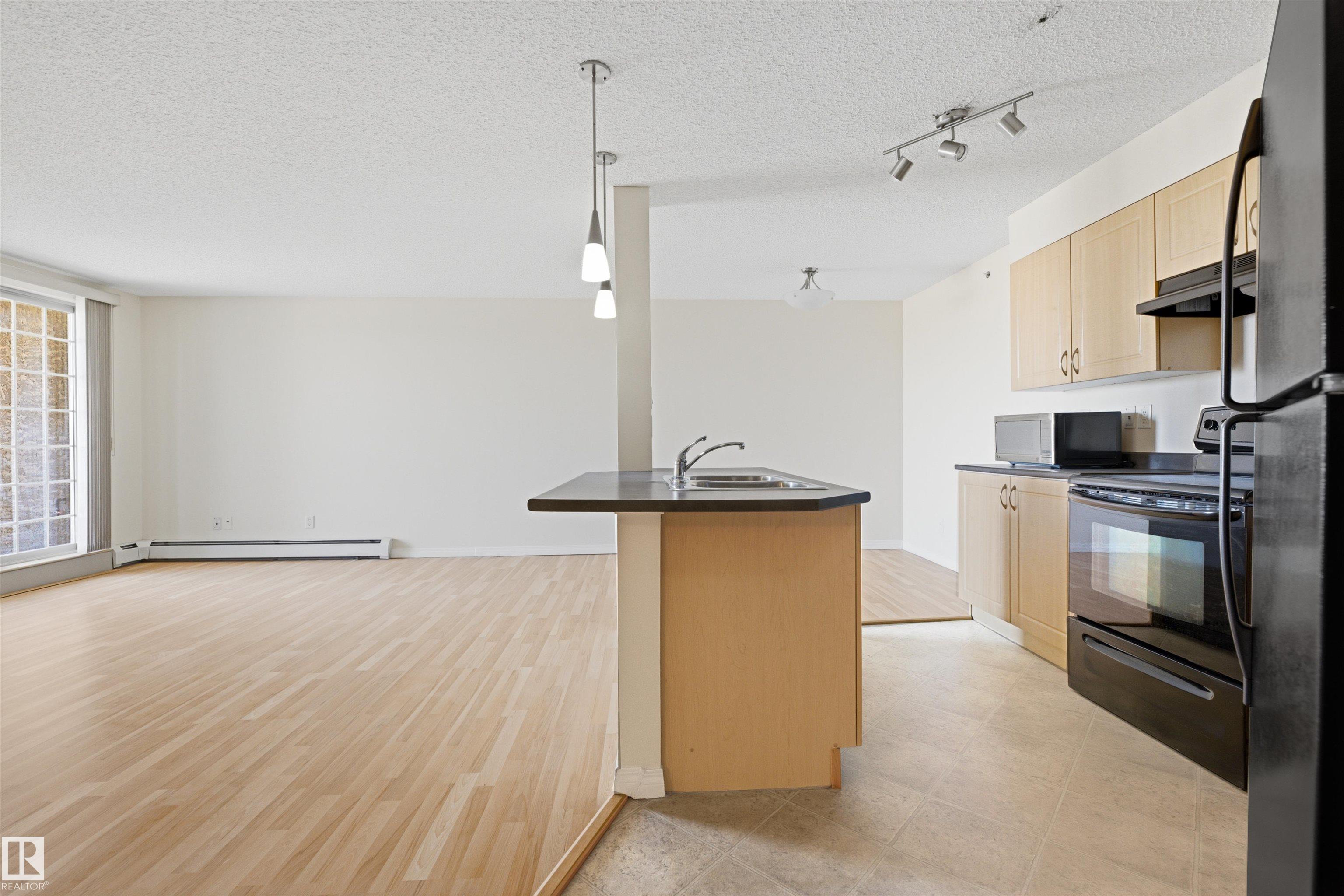 Welcome to prestigious Rutherford!! Freshly painted! This 669 sq footer is steps away from shopping, schools, Calgary Trails, and the Anthony Henday! Brand new laminate flooring and paint! Beautiful ravine view with an open concept floor plan make this a true gem! In-suite laundry and storage! Heated underground parking with storage locker adds security and convenience. Condo fees include everything but cable! BBQ gas line for unlimited entertaining! Beautiful and peaceful view from balcony. Quick possessi...