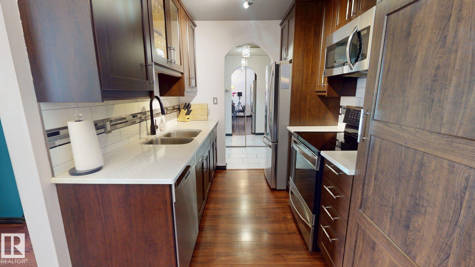 Beautifully renovated top-floor 2-bedroom condo in a desirable southwest community. This move-in ready home features modern finishes in a quiet, established setting. The kitchen offers quartz countertops, stainless steel appliances, updated cabinetry with pantry, and a glass tile backsplash. The bathroom includes quartz counters, updated cabinetry, and a full tub/shower surround. Newer laminate and tile flooring, updated lighting, fixtures, and fresh paint complete the interior. Enjoy a private NW-facing ...