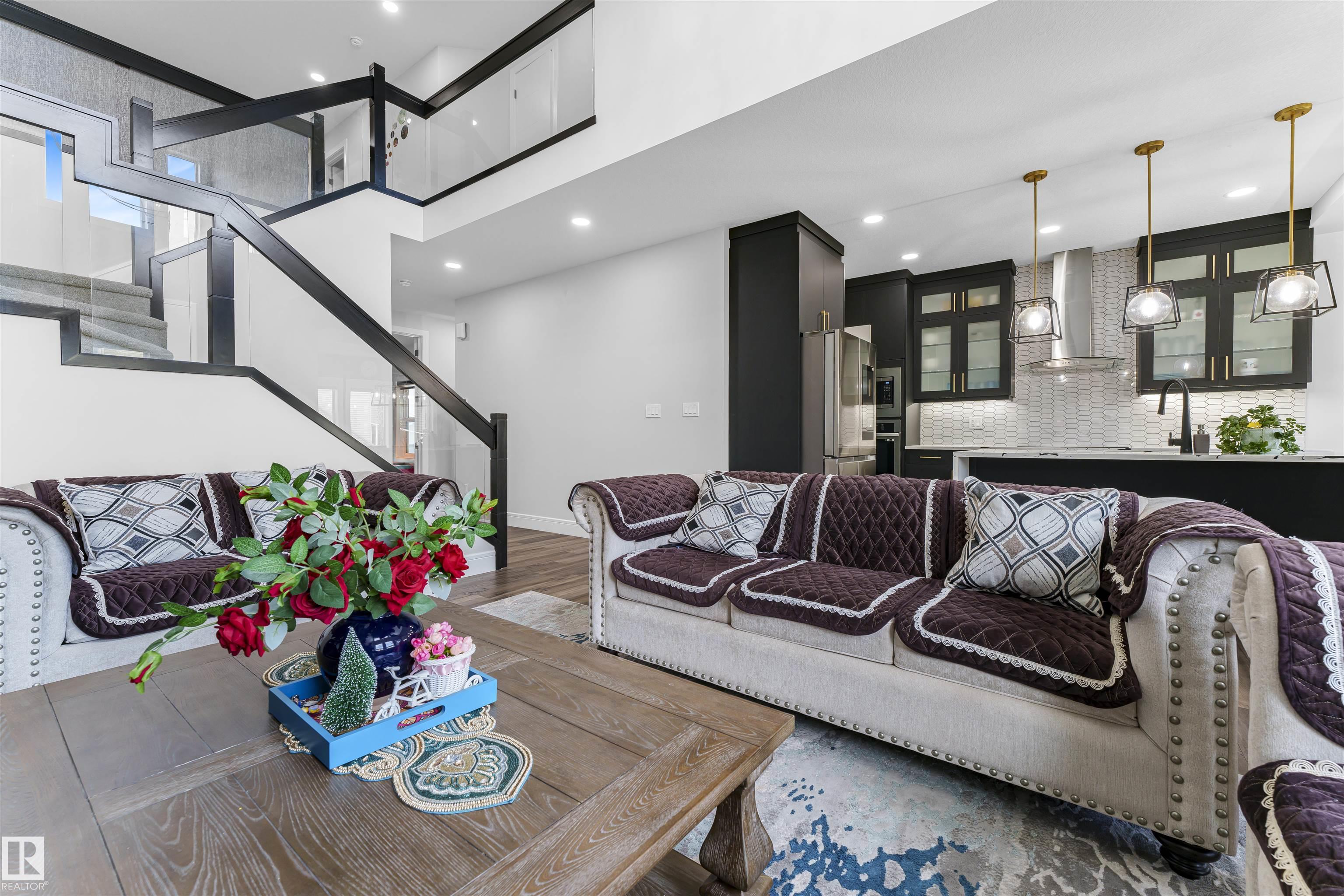 This stunning and fully upgraded double-car garage detached home is nestled in the highly sought-after community of Charlesworth in South Edmonton. Featuring a 2-bedroom legal basement suite for additional income, this home offers the perfect blend of luxury and practicality. The open-concept main floor showcases a chef-inspired kitchen with a convenient spice kitchen, a bright dining nook overlooking the backyard, and an open-to-above living area filled with natural light from large windows. A main floor b...