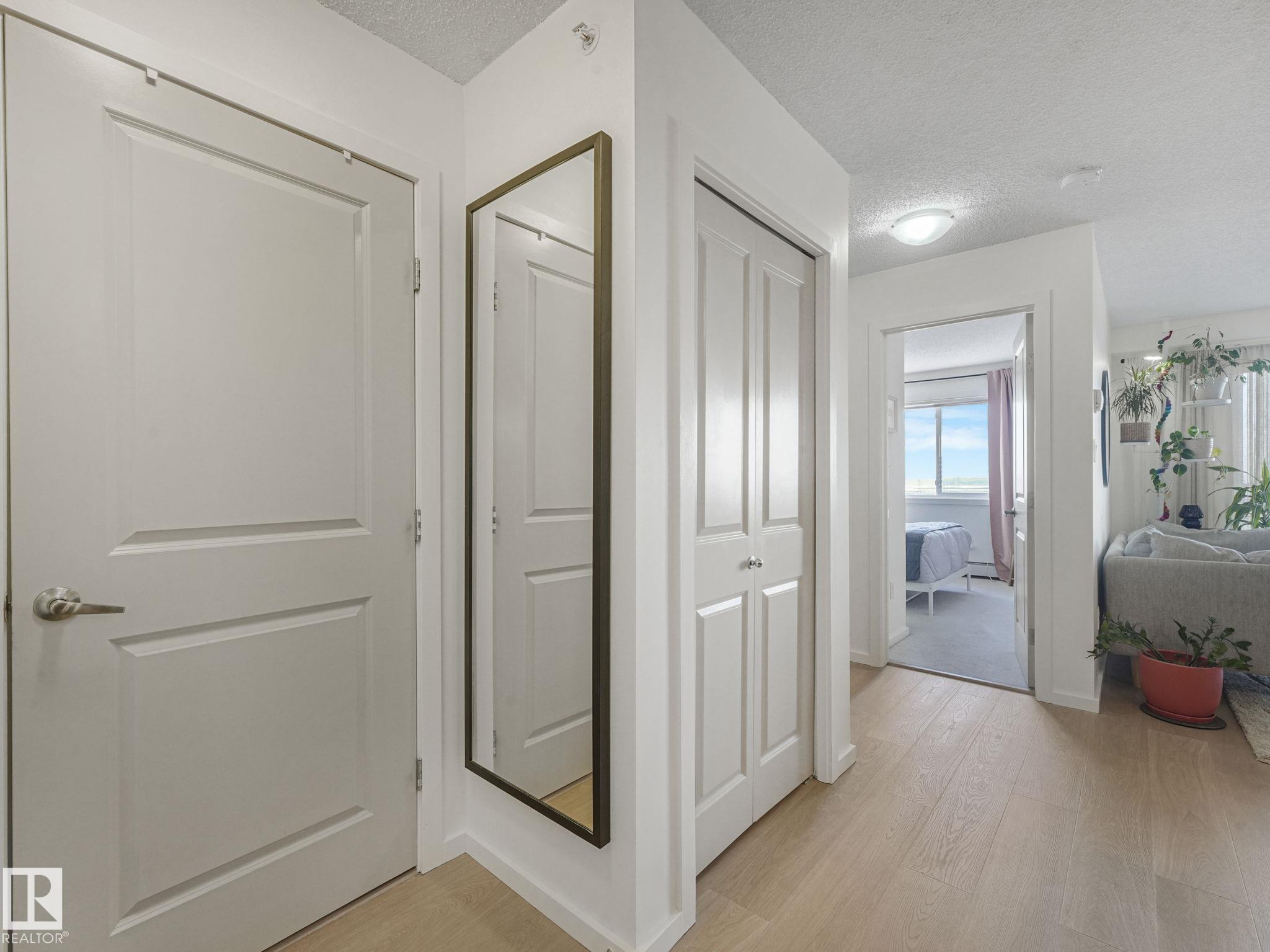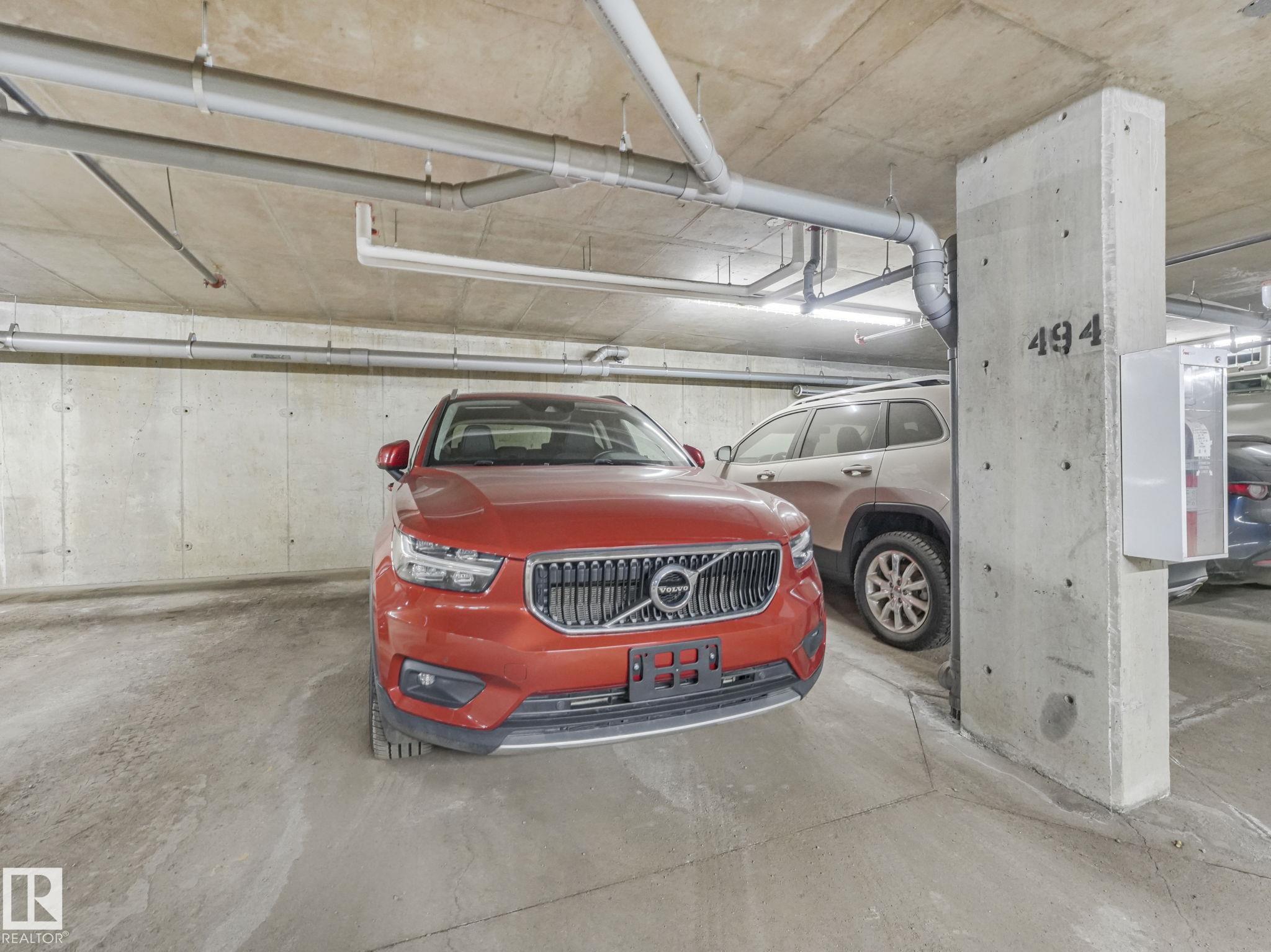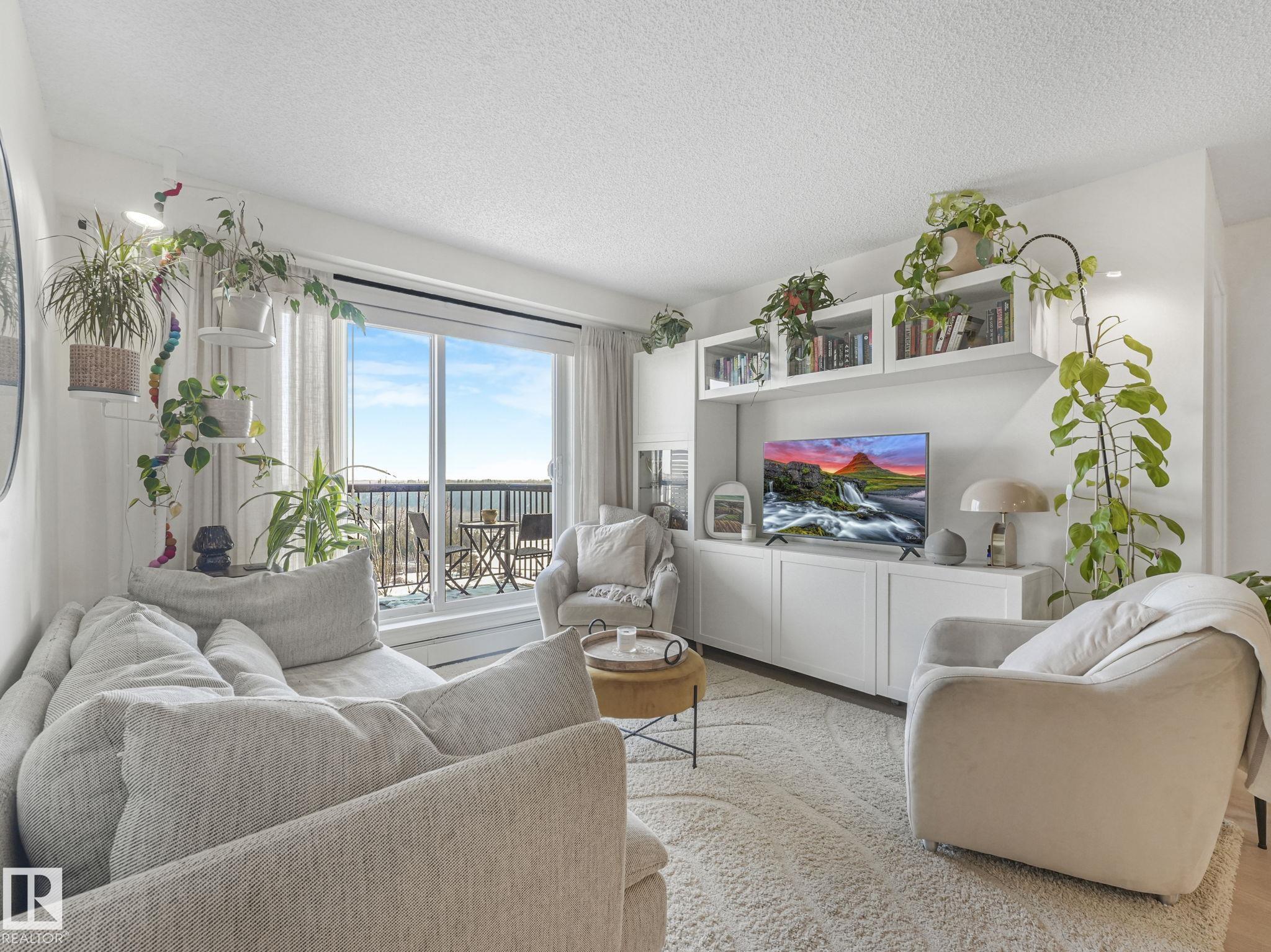 TOP FLOOR, bright, updated unit with unobstructed views of the river valley! 810 sq ft, 2 bedrooms / 2 full baths, plus 2 titled UNDERGROUND HEATED parking stalls and storage cage (located on the same floor as the suite). Open-concept layout with an island kitchen with stainless steel appliances, pantry, a new built-in coffee nook. Fresh white paint throughout, and new laminate flooring in kitchen/living room. Microwave/hoodfan, dishwasher, kitchen faucet are new. Unit has insuite laundry! Easy access to Vi...
