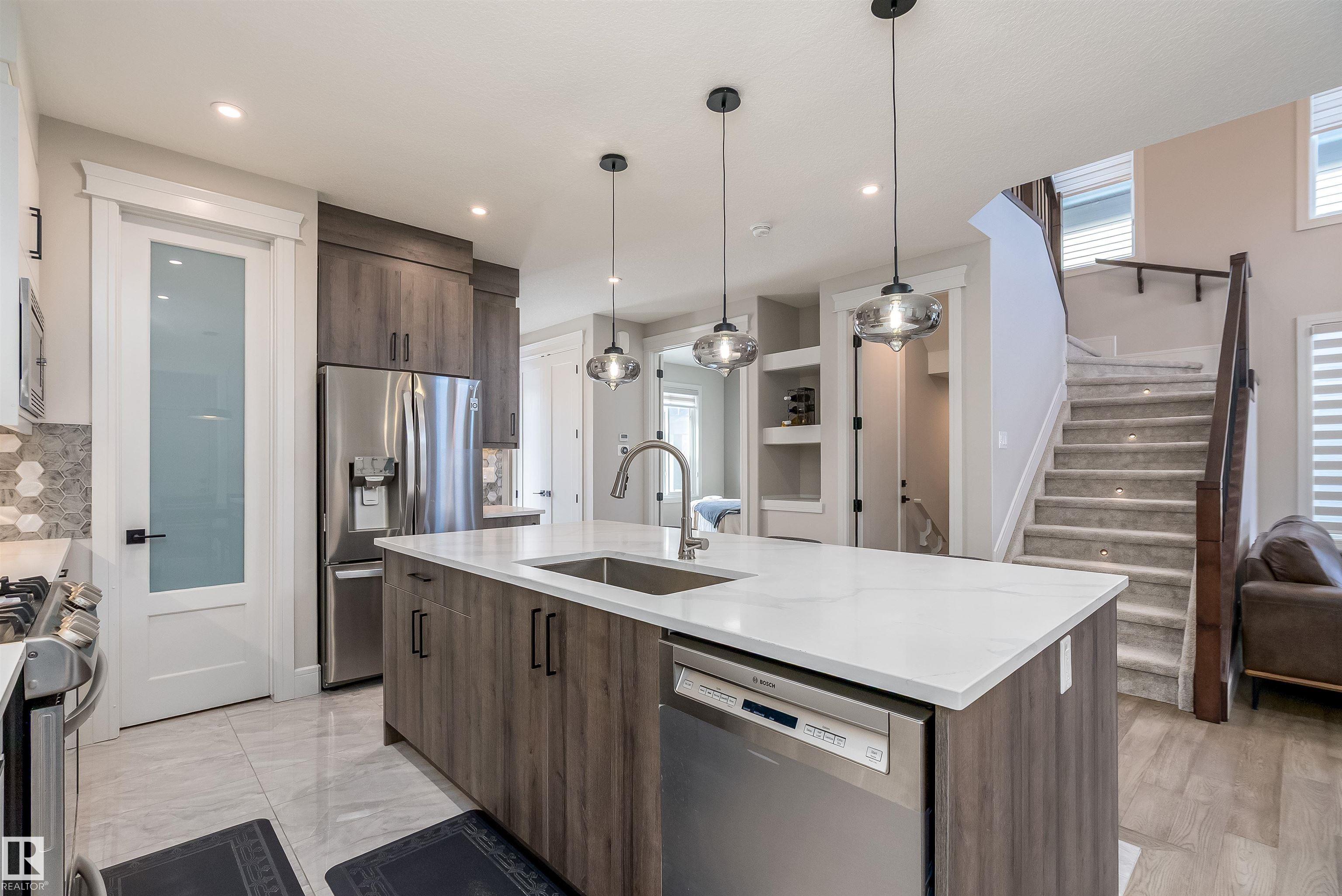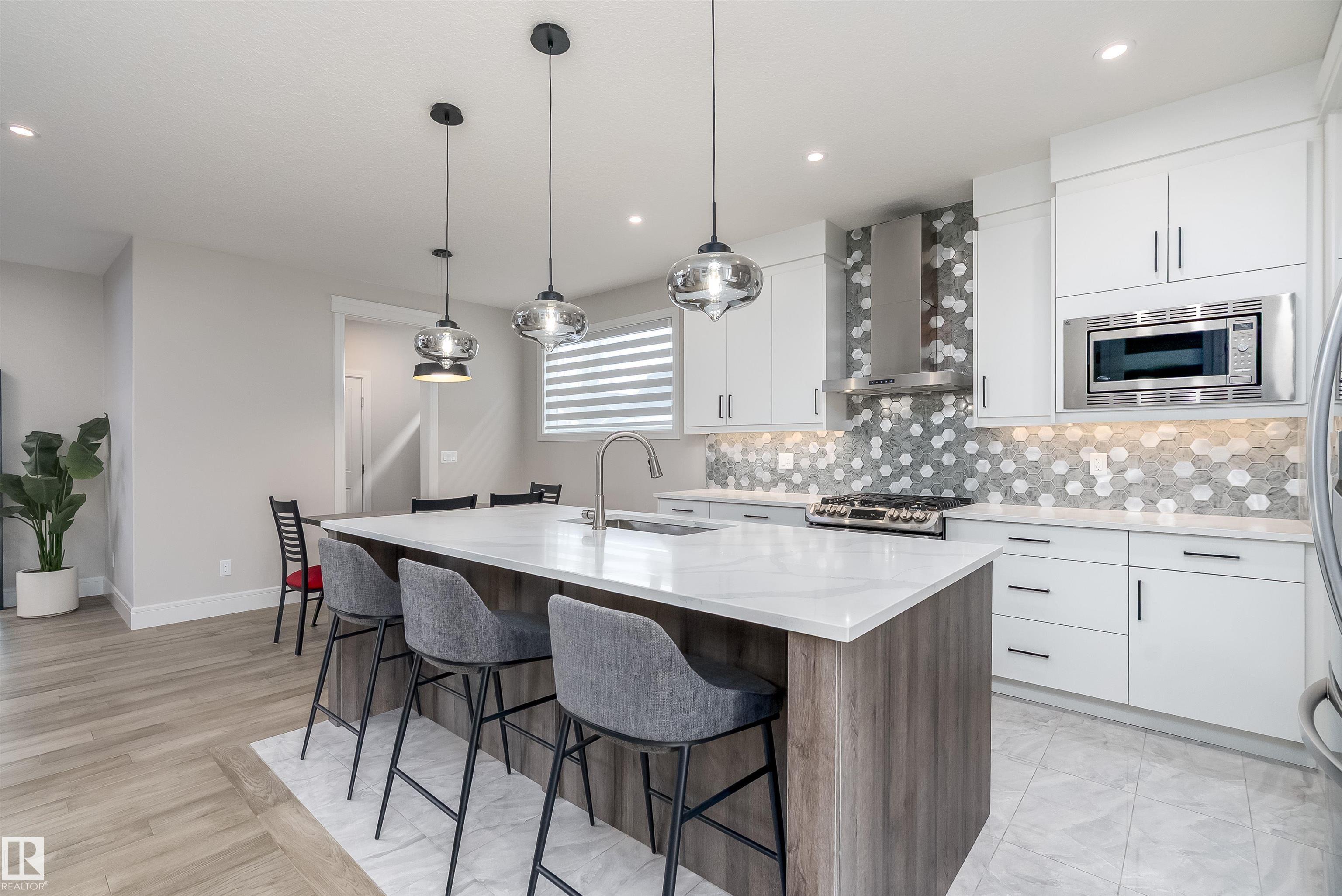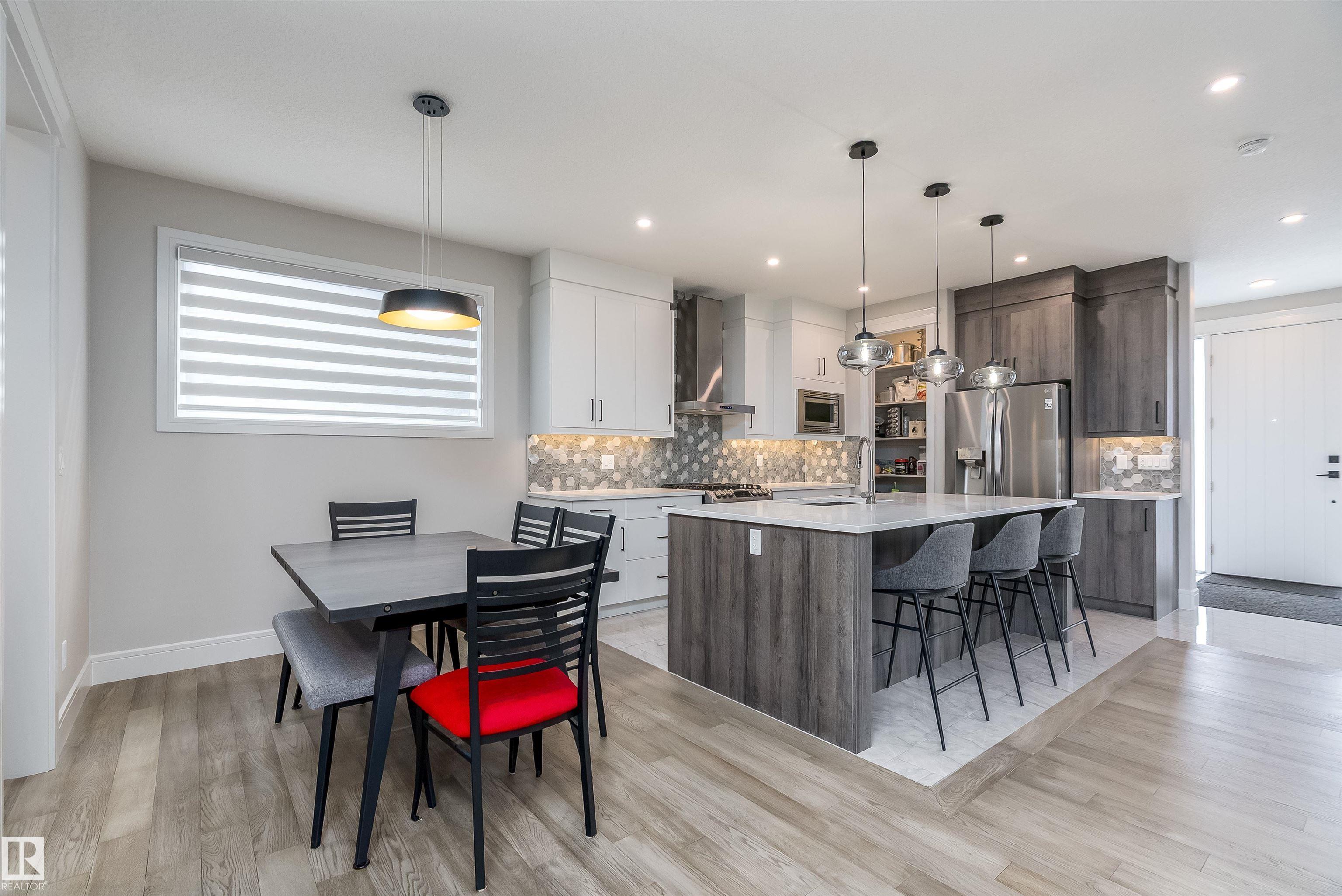 Welcome to this stunning 1894 sqft 2-storey home in the award-winning community of Griesbach, offering a total of 6 bedrooms (4+2) and 4 bathrooms. This property also includes a fully finished 2 bedroom LEGAL suite mortgage helper. Step inside to an impressive open-to-below great room showcasing sophisticated wainscoting and a coffered ceiling feature wall. The modern kitchen is beautifully finished with white and natural wood tone cabinetry, large island, upgraded SS appliances, gas range, hood fan, tiled...