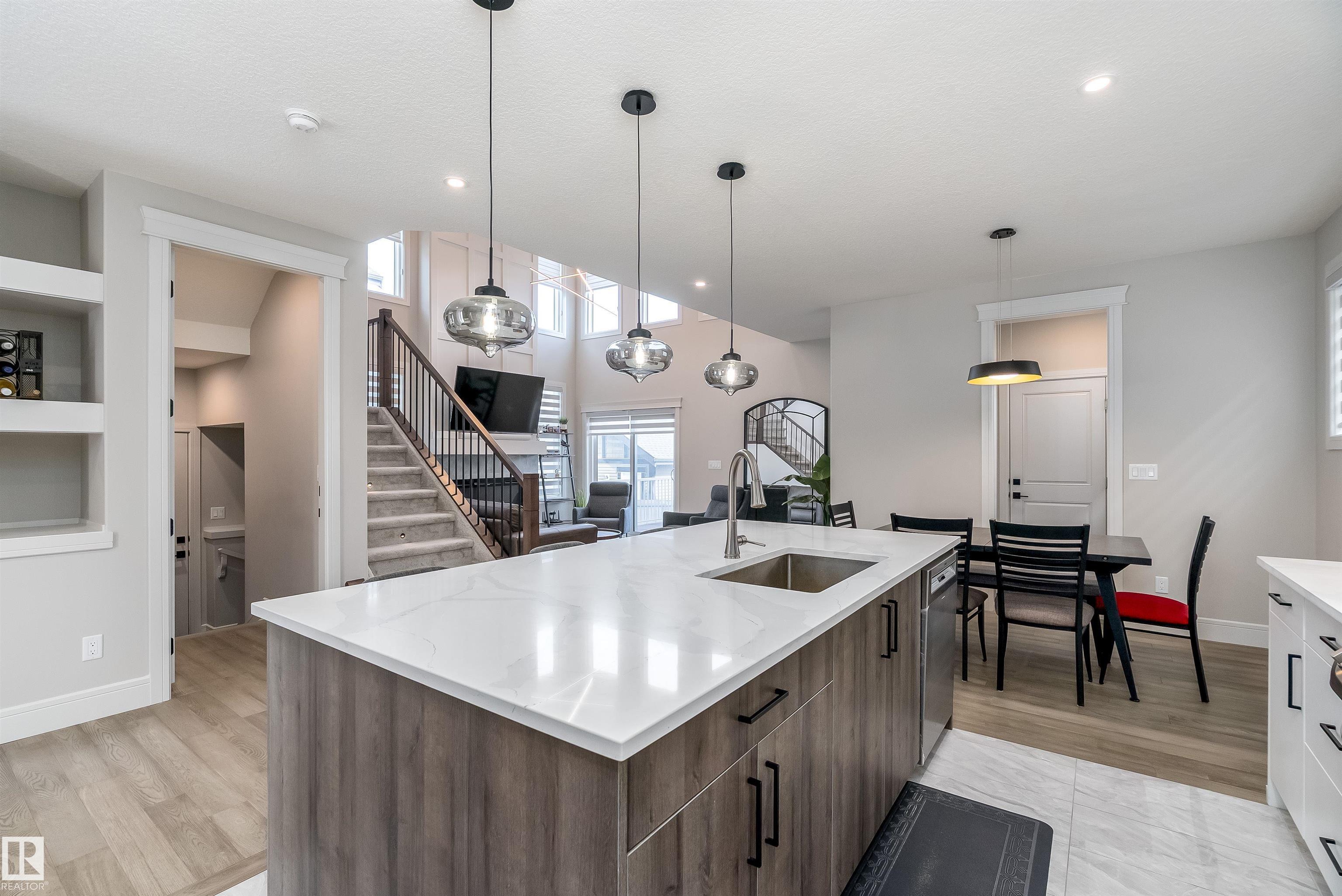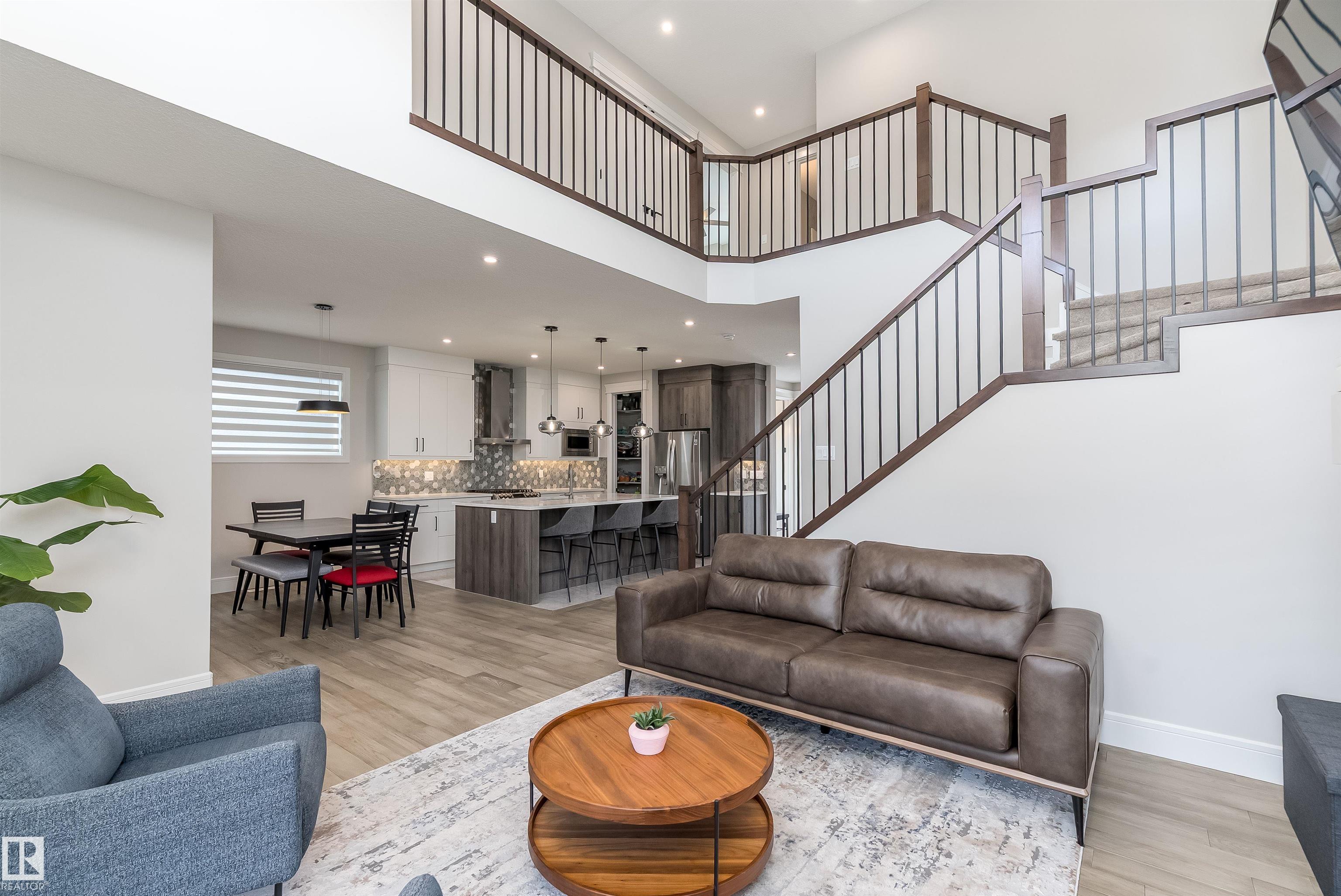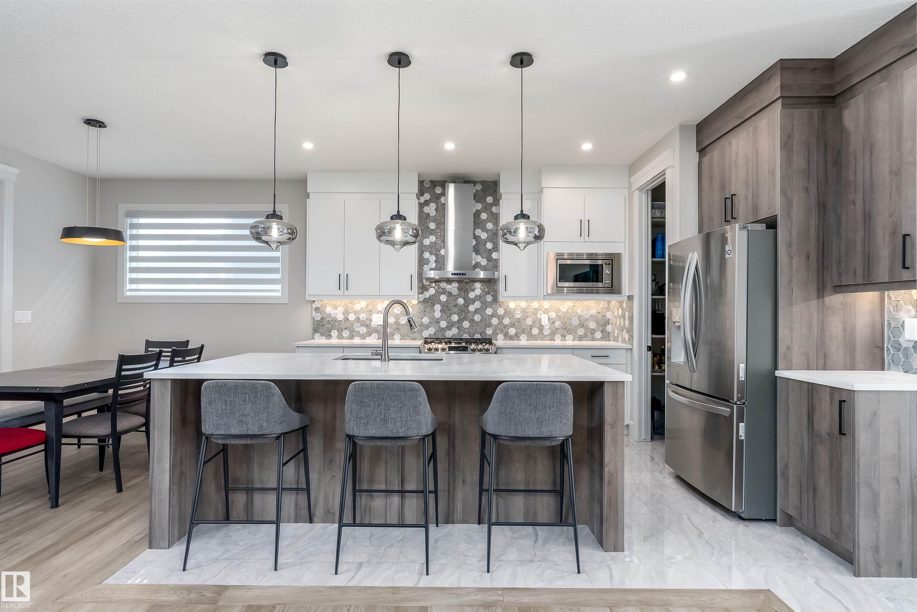 Welcome to this stunning 1894 sqft 2-storey home in the award-winning community of Griesbach, offering a total of 6 bedrooms (4+2) and 4 bathrooms. This property also includes a fully finished 2 bedroom LEGAL suite mortgage helper. Step inside to an impressive open-to-below great room showcasing sophisticated wainscoting and a coffered ceiling feature wall. The modern kitchen is beautifully finished with white and natural wood tone cabinetry, large island, upgraded SS appliances, gas range, hood fan, tiled...